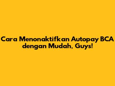 Hai, para nasabah setia Bank Central Asia (BCA)! Pernah nggak sih kalian merasa sedikit kesal karena ada tagihan yang tiba-tiba terpotong otomatis dari rekening, padahal kalian lupa atau bahkan sudah tidak menggunakan layanan tersebut? Nah, ini nih yang sering bikin pusing: autopay BCA. Autopay, atau auto-debit, itu fitur keren yang memungkinkan pembayaran tagihan atau transaksi lainnya secara otomatis dari rekening kamu. Praktis banget, kan? Tapi, namanya juga teknologi, kadang kita perlu melakukan penyesuaian. Salah satunya adalah menonaktifkan fitur ini kalau memang sudah tidak dibutuhkan lagi. Tenang aja, guys, proses menonaktifkan autopay BCA itu nggak serumit yang dibayangkan kok. Artikel ini bakal jadi panduan lengkap buat kamu yang ingin tahu cara menonaktifkannya, baik itu untuk tagihan kartu kredit, cicilan, atau layanan langganan lainnya. Kita akan bahas tuntas langkah-langkahnya, mulai dari yang paling mudah sampai ke opsi lain yang mungkin bisa kamu pertimbangkan. Jadi, siap-siap ya, kita bakal bongkar semua rahasia biar kamu bisa lebih tenang mengelola keuanganmu tanpa ada kejutan-kejutan yang nggak diinginkan dari fitur autopay ini. Yuk, langsung aja kita mulai petualangan menonaktifkan autopay BCA ini bersama-sama!