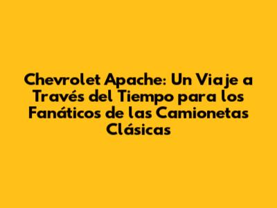 Chevrolet Apache: Guía Completa Para Amantes De Las Camionetas Clásicas