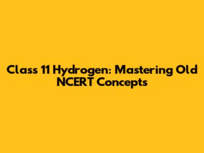Class 11 Hydrogen: Mastering Old NCERT Concepts