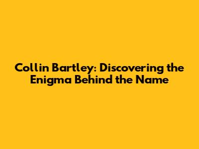 Collin Bartley: Discovering The Enigma Behind The Name