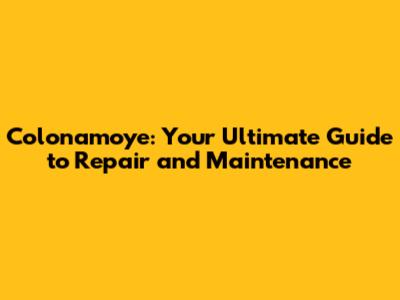 Colonamoye: Your Ultimate Guide To Repair And Maintenance