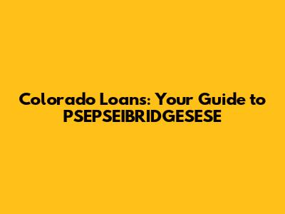 Colorado Loans: Your Guide To PSEPSEIBRIDGESESE