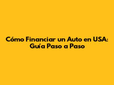 Cómo Financiar Un Auto En USA: Guía Paso A Paso