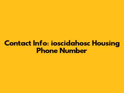 Contact Info: Ioscidahosc Housing Phone Number