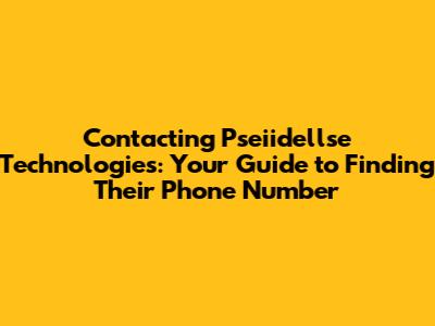 Contact Pseiidellse Technologies: Find Their Phone Number