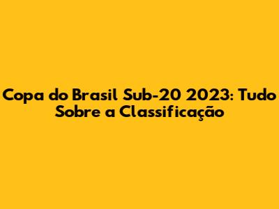 Copa Do Brasil Sub-20 2023: Tudo Sobre A Classificação