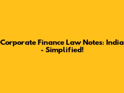 Corporate Finance Law Notes: India - Simplified!