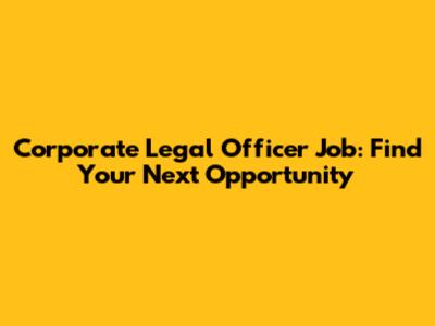 Corporate Legal Officer Job: Find Your Next Opportunity