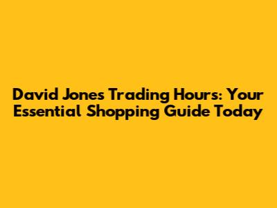 - What are the usual weekday trading hours for David Jones? Most David Jones stores are open from approximately 9:00 AM to 6:00 PM on weekdays, but this can vary. Some stores may have extended hours.
