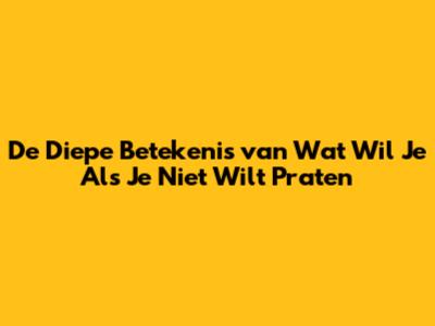 De Diepe Betekenis Van 'Wat Wil Je Als Je Niet Wilt Praten'