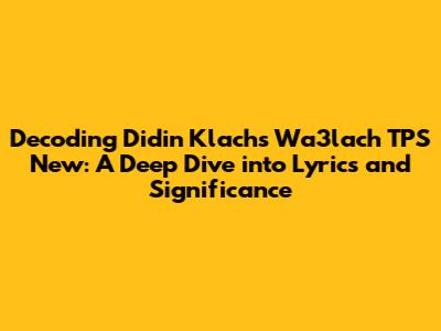 Hey music lovers! Ever found yourself vibing to a track and thinking, "Woah, what's this really about?" Well, today, we're diving deep into Didin Klach's hit, "Wa3lach TPS New." This song has been making waves, and for good reason! We're going to break down the lyrics, explore the meaning, and uncover what makes this track so captivating. Ready to get started?