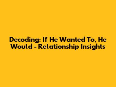 Decoding: 'If He Wanted To, He Would' - Relationship Insights