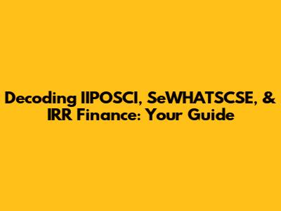 Decoding IIPOSCI, SeWHATSCSE, & IRR Finance: Your Guide
