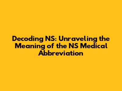 Decoding NS: Unraveling The Meaning Of The NS Medical Abbreviation