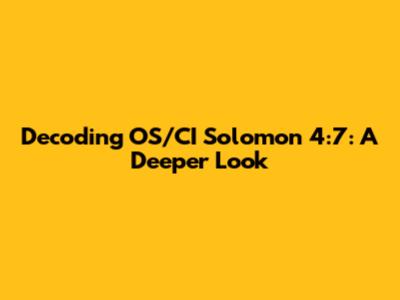 Decoding OS/CI Solomon 4:7: A Deeper Look