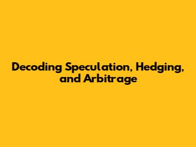Hey finance enthusiasts! Ever heard these terms – speculation, hedging, and arbitrage – thrown around and felt a little lost? Don't sweat it! They're super important concepts in the world of finance, and once you grasp them, you'll feel like you've unlocked a secret level in the investment game. Let's dive in and break down each of these, making sure you not only understand what they are but also how they work in the real world. Think of this as your friendly guide to navigating the exciting, and sometimes complex, landscape of financial markets.