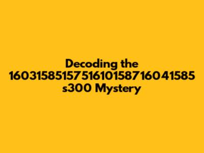 Decoding The 1603158515751610158716041585 S300 Mystery