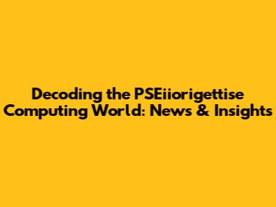 Decoding The PSEiiorigettise Computing World: News & Insights
