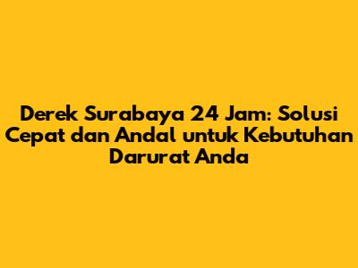 Derek Surabaya 24 Jam: Solusi Cepat Dan Andal Untuk Kebutuhan Darurat Anda