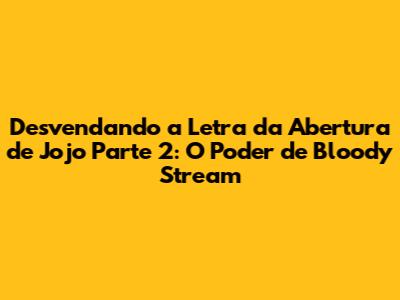 Desvendando A Letra Da Abertura De Jojo Parte 2: O Poder De Bloody Stream