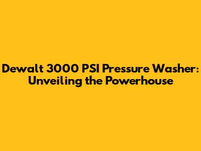 Dewalt 3000 PSI Pressure Washer: Ultimate Guide
