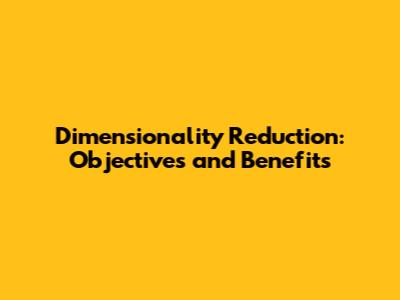 Dimensionality Reduction: Objectives And Benefits