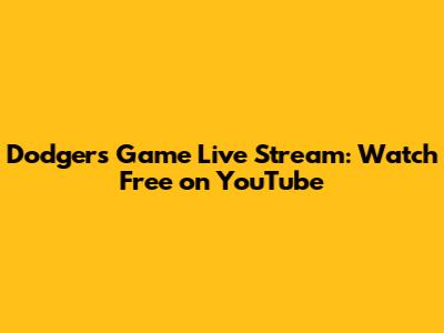 Dodgers Game Live Stream: Watch Free On YouTube