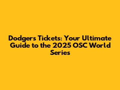 Dodgers Tickets: Your Guide To The 2025 OSC World Series
