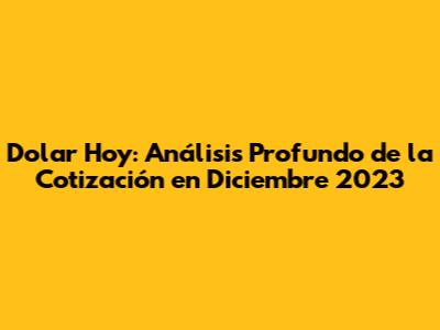 Dolar Hoy: Análisis Profundo De La Cotización En Diciembre 2023