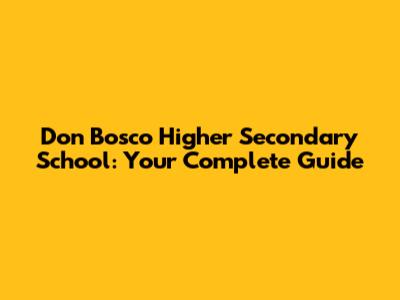 Don Bosco Higher Secondary School: Your Complete Guide