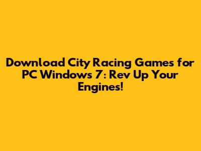 Hey guys! Are you ready to dive headfirst into the thrilling world of city racing games? If you're rocking a Windows 7 PC, you're in luck! There's a whole universe of awesome racing games out there just waiting for you to download and experience. From high-speed chases through neon-lit streets to drifting around corners with style, these games offer an adrenaline-pumping experience that's hard to beat. I'm talking about the best city racing game download for PC Windows 7 that you can find. So, buckle up, because we're about to explore the best options, where to find them, and what makes these games so darn fun. Get ready to put the pedal to the metal!
