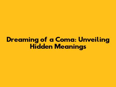 Dreaming Of A Coma? Unveiling Hidden Meanings