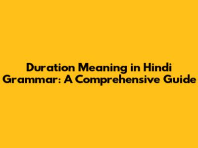 Duration Meaning In Hindi Grammar: A Comprehensive Guide