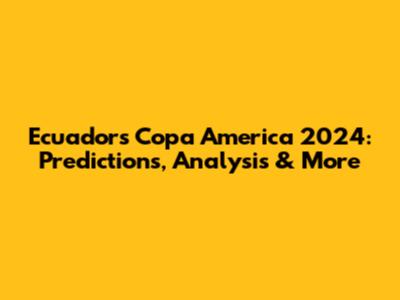 Ecuador's Copa America 2024: Predictions, Analysis & More