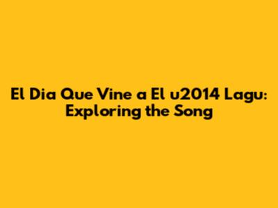 El Dia Que Vine A El U2014 Lagu: Exploring The Song