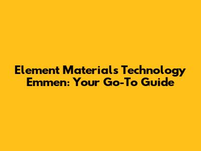 Element Materials Technology Emmen: Your Go-To Guide