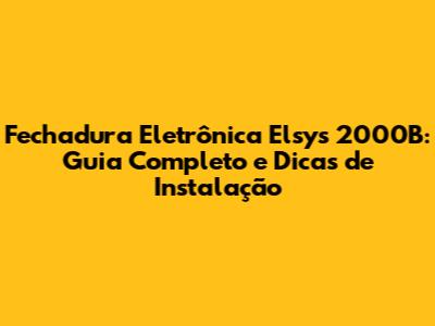Elsys 2000B: Guia Completo E Dicas De Instalação
