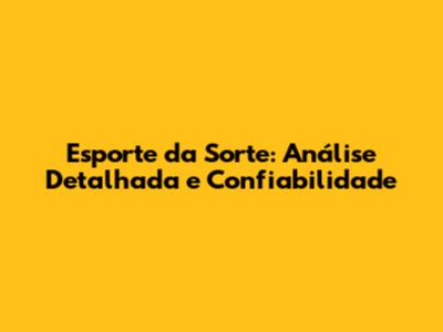 Esporte Da Sorte: É Confiável? Uma Análise Completa!