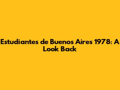 Estudiantes De Buenos Aires 1978: A Look Back