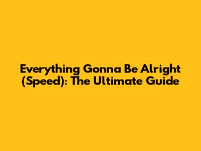 Everything Gonna Be Alright (Speed): The Ultimate Guide