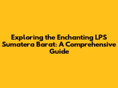 Exploring The Enchanting LPS Sumatera Barat: A Comprehensive Guide