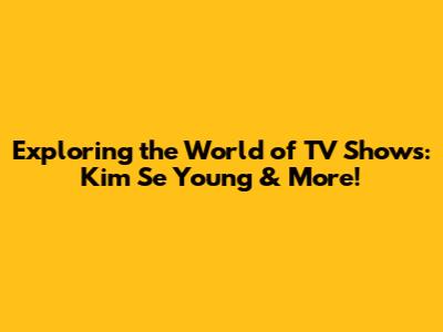 Exploring The World Of TV Shows: Kim Se Young & More!
