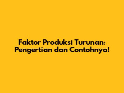 Apa Itu Faktor Produksi Turunan?