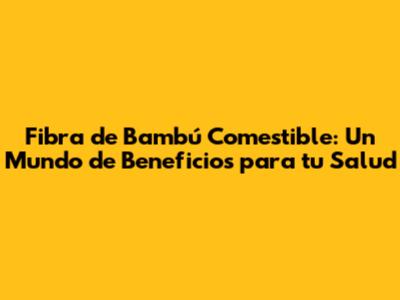 ¡Hola, amigos! ¿Alguna vez han oído hablar de la fibra de bambú comestible? Si la respuesta es no, ¡prepárense para una sorpresa! Este increíble ingrediente está ganando popularidad a pasos agigantados, y por una muy buena razón. La fibra de bambú comestible no solo es versátil y fácil de usar en la cocina, sino que también está repleta de beneficios para la salud que podrían cambiar la forma en que vemos nuestra alimentación diaria. En este artículo, vamos a sumergirnos en el fascinante mundo de la fibra de bambú comestible, explorando sus orígenes, sus impresionantes ventajas, cómo incorporarla a nuestras comidas, y mucho más. Prepárense para descubrir un superalimento que podría convertirse en su nuevo mejor amigo en la búsqueda de una vida más saludable.