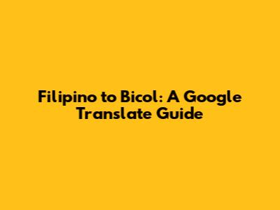Filipino To Bicol: A Google Translate Guide