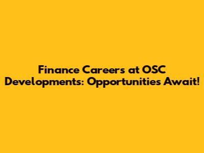 Finance Careers At OSC Developments: Opportunities Await!