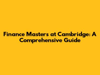 Finance Masters At Cambridge: A Comprehensive Guide