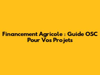 Financement Agricole : Guide OSC Pour Vos Projets