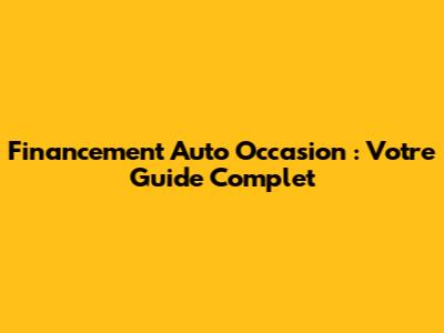 Financement Auto Occasion: Votre Guide Complet