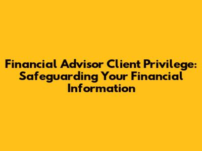 Financial Advisor Client Privilege: Protecting Your Information